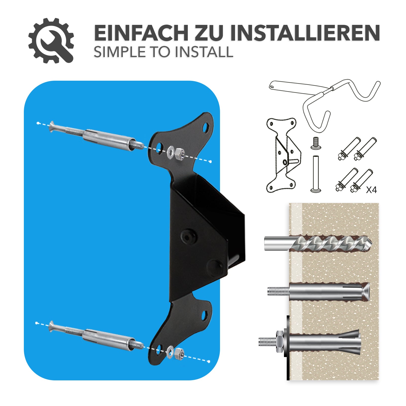 Einfach mal abhängen – so könnte man das Motto unseres Fahrradhalters „Bernie“ am besten zusammenfassen. Die aus stabilem Metall gefertigte Halterung wird ganz unkompliziert und schnell mit vier Schrauben befestigt, sodass alle gängigen Fahrradmodelle eingehängt werden können. Ob Sie Ihr Fahrrad in der Wohnung oder im Keller verstauen wollen, spielt keine Rolle. „Bernie“ macht überall stets eine gute Figur. Sobald Sie der Wandhalterung eine kurze Verschnaufpause gönnen & bei gutem Wetter die Natur bei einer Radtour genießen wollen, lässt sich unser Produkt im Nu zur Wand hin hochklappen.