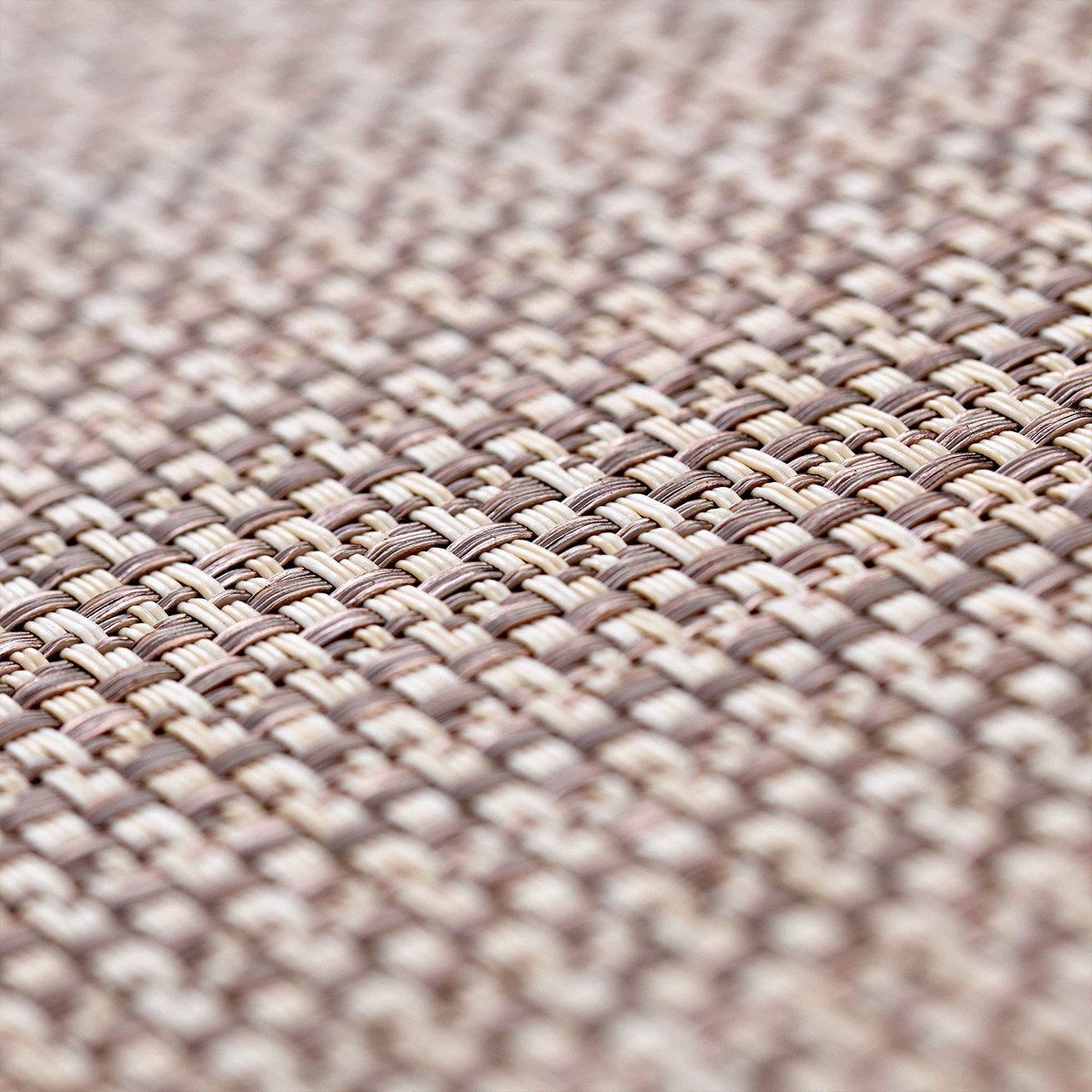 Dieser Aussenteppich schafft durch seine robuste Beschaffenheit und sein attraktives Erscheinungsbild eine angenehme, wohnliche Atmosphäre auf dem Balkon, der Terrasse oder im Garten. Dank der verschiedenen Grössen können Sie den Outdoor-Belag ebenfalls als Läufer oder als Teppich im Grossformat verwenden. Dank rutschhemmender Rückseite und seines hohen Eigengewichts liegt der Vinyl-Belag fest auf dem Untergrund und sorgt für Eleganz und Gemütlichkeit.