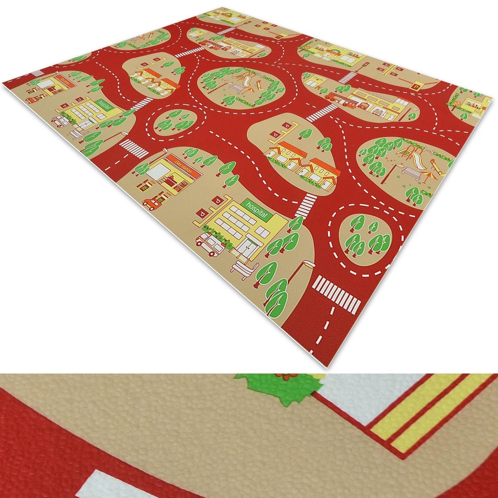 Der hochwertige Kinder-Spielteppich besteht aus schadstofffreien Materialien. Die Spielmatte aus hautfreundlichem Polyester sorgt für hohen Spielkomfort und gleichzeitig für Sicherheit und festen Halt auf dem Fussboden. Der Strassenteppich mit Feuerwehr-Elementen ist bei einer konstanten Breite von 140 Zentimetern in einer Länge zwischen 1 Meter und 30 Metern erhältlich.